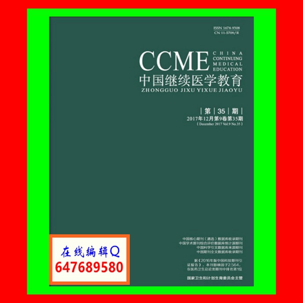《中国继续医学教育》杂志(China Continuing Medical Education,CCME)是国家新闻出版总署批准,由国家卫生和计划生育委员会主管,中国水利电力医学科学技术学会主办,中国继续医学教育杂志社编辑出版的中央级继续教育类刊物。国内刊号:CN 11-5709/R,国际刊号:ISSN 1674-9308,邮发代号80-311。出版周期为每月上、中、下三旬。主要栏目:论著、短篇论著、基础医学、临床医学、药物研究、药物与临床、临床案例、临床护理、经验交流、病理分析、数字医学、医学影像、医学检验、中医中药、医学教育、专家论坛、综述、卫生论坛、职业卫生、学校卫生、职业病诊断、传染病、医疗机构管理、医院感染控制、地方病标准、食品安全、营养标准、血液标准等。