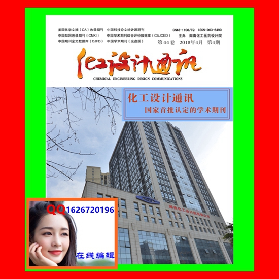 《化工设计通讯》投稿须知:1.文稿应具备学术性、专业性、创新性、科学性,务求主题突出、论据充分、文字精炼、数据可靠,有较高的学术水平、专业水平和实用价值。2.文稿的篇幅计空格在内(含摘要、图、表、参号文献等)不超过7000字符。3.文稿结构一般为题名、作者姓名、单位(省市、邮编)、摘要、关键词及上述各项的英文译文、中图分类号、投稿日期、作者简介(包括姓名、出生年、性别、籍贯、学历、职称、研究方向或所从事的主要工作)、引言、正文、参考文献、通讯地址、联系电话及邮箱等。4.中文题名不得超过20字,英文题名实词不得超过10个。中文摘要应在150-250字,关健词3-8个。摘要必须拥有与论文同等量的主要信息,包括目的、方法、结果、结论等四要素。以提供梗概为目的,不对文稿内容做评论,同时尽量避免特殊字符或数学表达式。5. 请在首页页脚注明基金项目和作者简介。凡属国家、省部级以上科学基金资助项目和重点攻关课题项目文稿,请提供基金的标准名称和编号。作者简介包括出生年、性别、职称、学历、主要从事的工作或研究方向。6. 参考文献的著录规则请参照国家标准GB/T 7714-2005。参考文献应采用公开发表的文献。参考文献列表按文献在正文中引用的先后顺序排列。7.请勿一稿多投,否则责任自负。本刊对文稿有修改权,所发表文章版权归编辑部所有。文稿一经发表,编辑部将随即赠送当期杂志。8.来稿请用E-mail投稿,文稿须为WORD格式。请提供作者简介和详细通信地址、邮政编码、联系电话、手机及E-mail地址。