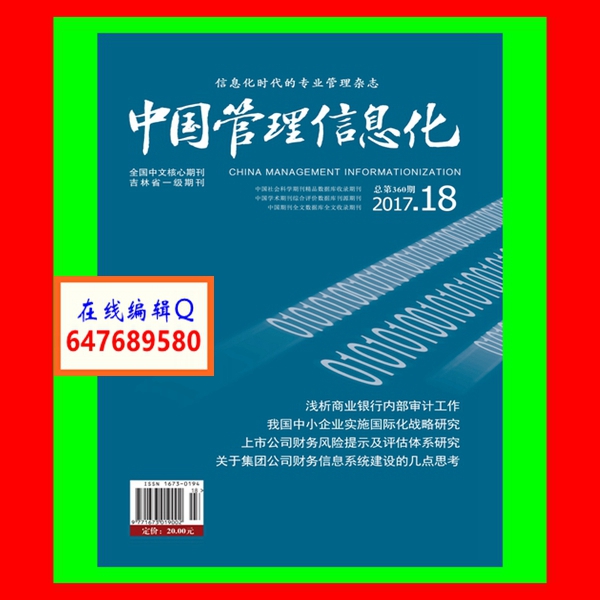 《中国管理信息化》2004年8月被北京大学图书馆和北京高校图书馆期刊工作研究会共同主持的国家社科基金项目“中文核心期刊评价研究”成果——《中文核心期刊要目总览》遴选为全国中文核心期刊。本刊被全国多家网络版、电子版数据库(“中国知网”、“龙源期刊网”等)收录,作者如不同意该论文被上述网络版、电子版收录,请来函说明,否则视为同意。本刊为半月刊,国际标准16开本,每月1日和15日出刊,全年计24期。