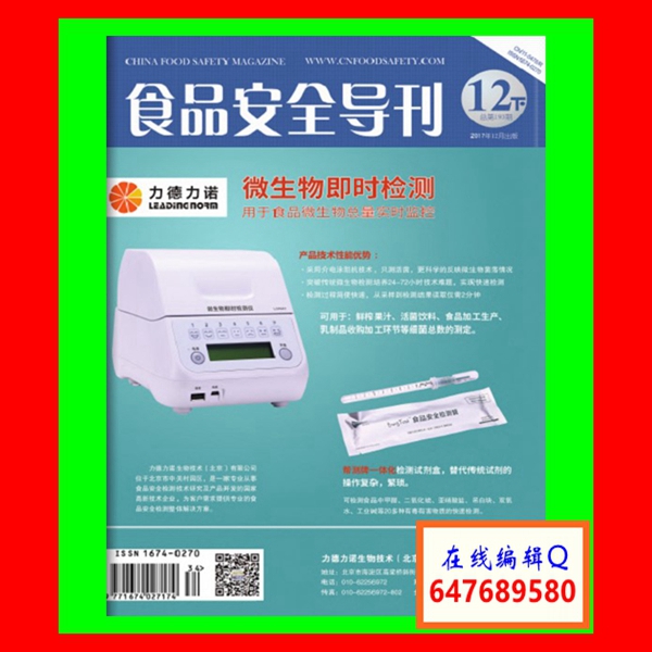 《食品安全导刊》办刊宗旨:本着权威、全面、高端、深入的原则,以构建国家食品安全行业权威信息交流与沟通平台为愿景,以成为食品生产、加工、批发、零售经营企业的安全顾问为己任,以成为食品安全领域值得信赖的服务提供者为目标,力图为食品行业提供全方位的食品安全新闻和信息服务。本刊面向从食品生产、加工到流通销售的全产业链,围绕行业与领域、产业与市场,关注食品生产加工到流通销售的产业链安全。本刊特色:立足于食品安全行业的技术优势,以“新闻性、时效性、可读性”为特色。