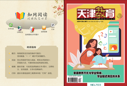 《天津教育》是经国家新闻出版广电总局批准备案的G4基础教育类专业学术期刊。主要栏目:本刊策划、实践探索、教育论坛、教师教育、学生发展、教学艺苑、师道驿站等(收稿范围:高中、初中、小学和幼儿教育)。本刊系中国核心期刊(遴选)数据库、中国期刊全文数据库等收录期刊,中国知网(CNKI)数据库全文收录期刊,在本刊发表的论文可在职称评定、职务晋升、业绩考核及岗位竞聘中起到重要科研认定作用。