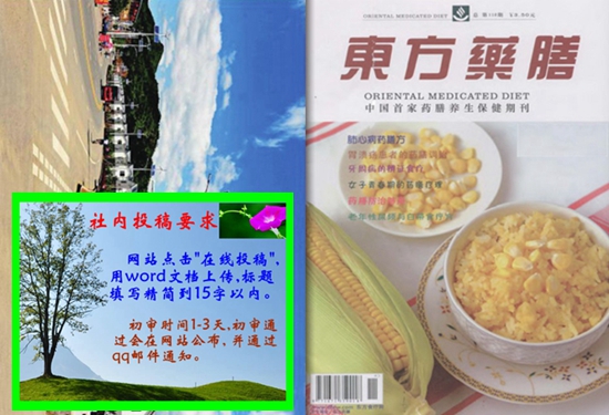 《东方药膳》杂志是经国家广播电视总局批准,由湖南中医学院、中华中医药学会营养药膳分会主管、主办的的国家级医学综合类专业学术期刊。国际标准刊号:ISSN 1671-3591, 国内统一刊号:CN 43-1461/R,邮发代号:42-148。主要栏目:健康资讯、健康保健、临床研究、医院管理、护理探讨、经验交流、健康教育、论著、综述、讲座等。本刊系中国学术期刊综合评价数据库收录期刊、万方数据库全文收录期刊、中国核心期刊(遴选)数据库收录期刊。