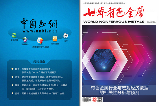《世界有色金属》杂志主要报道国内外有色金属工业生产经营、技术创新、产品应用和市场动态信息,深度报道国内外有色金属工业发展中的热点、经营战略和成功经验,是适用于全国经济、财政、金融力企业单位领导干部、管理人员、专业科研人员以及大专院校师生阅读的高端经济类学术杂志。本刊系中国学术期刊综合评价数据库来源期刊,中文科技期刊数据库、中国核心期刊(遴选)数据库、中国知网(CNKI)数据库、维普数据库等国内大型权威学术数据库收录期刊。在本刊发表的论文可在职称评定、晋升考核以及岗位竞聘中起到重要科研认定作用。