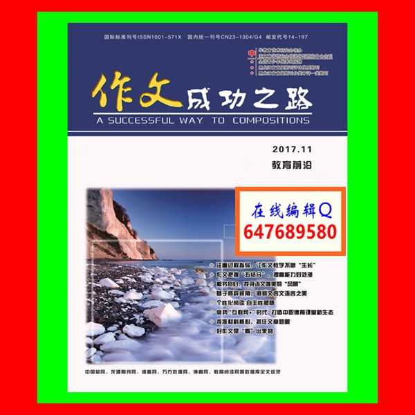 《作文成功之路》杂志主要栏目:创意课堂、经验交流、教学漫议、写作技巧、阅读教学、探索者、实践应用、佳作点评、佳作展示等(新探索、新创见、新阅读、新理论、新经验、新作文。新教学)。征稿对象:教研工作者、一线教师(大中小学幼儿园)、课程研究者、大中小学生等。《作文成功之路》全国公开发行,中国知网、龙源期刊网、维普、万方全文收录,教育教学研究版专业发表教师评职称晋级论文。《作文成功之路》杂志由中华教育艺术研究会领办,系中国文章学研究导读导写研究中心会刊黑龙江省首届期刊评比优质期刊黑龙江省首届期刊分类审评一类期刊