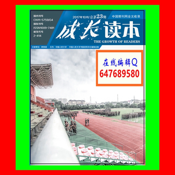 《成长读本》是经国家新闻出版广电总局批准,教育部主管、中国人民大学主办,中国人民大学书报资料中心编辑出版的G4教育类综合期刊,国内刊号:CN 11-5759/G4;国际刊号:ISSN1009-7481;邮发代号:2-414。本刊主要栏目设置:教育前沿、教育纵横、创新教育、艺术教育、职业教育、教学交流、小荷风采、班主任天地、综合论坛等。
