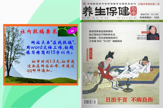 《养生保健指南》是经国家广播电视总局批准,由内蒙古新华报业中心主管、主办的医学养生保健类专业学术期刊。国际标准刊号:ISSN 1006-6845,国内统一刊号:CN 15-1353/R,邮发代号:52-138。主要栏目:论著、临床医学、医疗管理与信息、护理研究、卫生与健康、营养与食品安全、保健科普与教育、医学图书与情报、经验交流、综述等。本刊为中国万方数据库、上海图书馆馆藏、国家图书馆馆藏、维普网、中国学术期刊(光盘版)全文收录期刊。