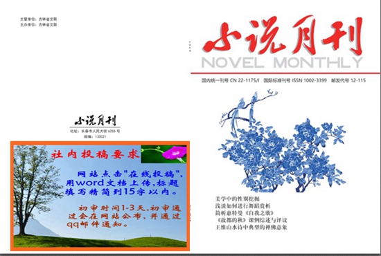 《小说月刊》杂志是经国家广播电视总局批准,由吉林省文学艺术界联合会主管、主办的一本纯文学类专业学术理论你期刊。国际标准刊号:ISSN 1002-3399;国内统一刊号:CN 22-1175/I。主要栏目:卷首、特别推荐、南腔北调、生存、官场、旧味、醒俗、传奇、隐秘等。